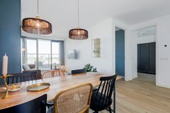 - Compacte woonkamer met 6-persoons eettafel