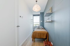 De hoofdslaapkamer heeft een heerlijk tweepersoonsbed, veel kastruimte en een fijn compact bureau. De tweede slaapkamer heeft een eenpersoonsbed met een op maat gemaakte inbouwkast.