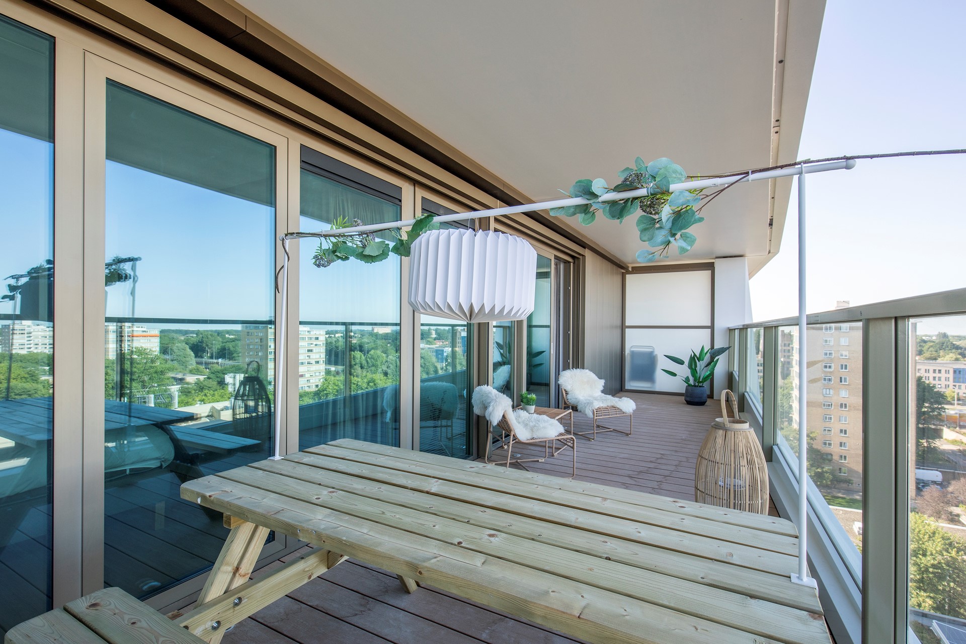 - Groot terras van 20m2 op het zuiden met eettafel en relaxstoelen