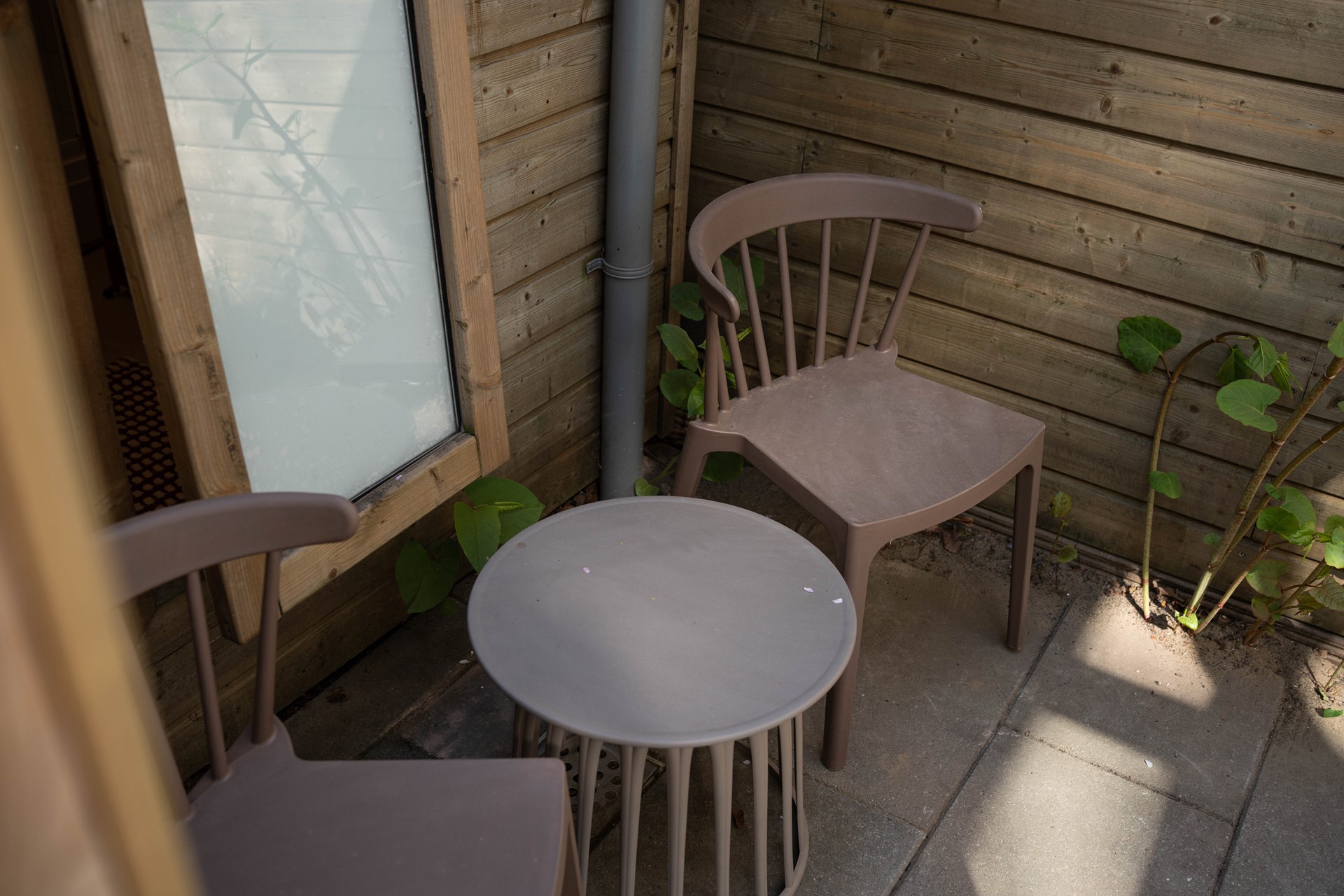 Het hoge plafond en de grote ramen geven de woning een open en lichte uitstraling. De woning leent zich uitstekend voor gezellig samenzijn maar ook om je terug te trekken in je eigen gedeelte. De woning heeft een royale eettafel voor zes personen in de achterkamer en een kleinere ronde eet /werktafel in de voorkamer. De zespersoons buitentafel geeft de mogelijkheid om optimaal te genieten van je hoofdmaaltijd op zonnige dagen.