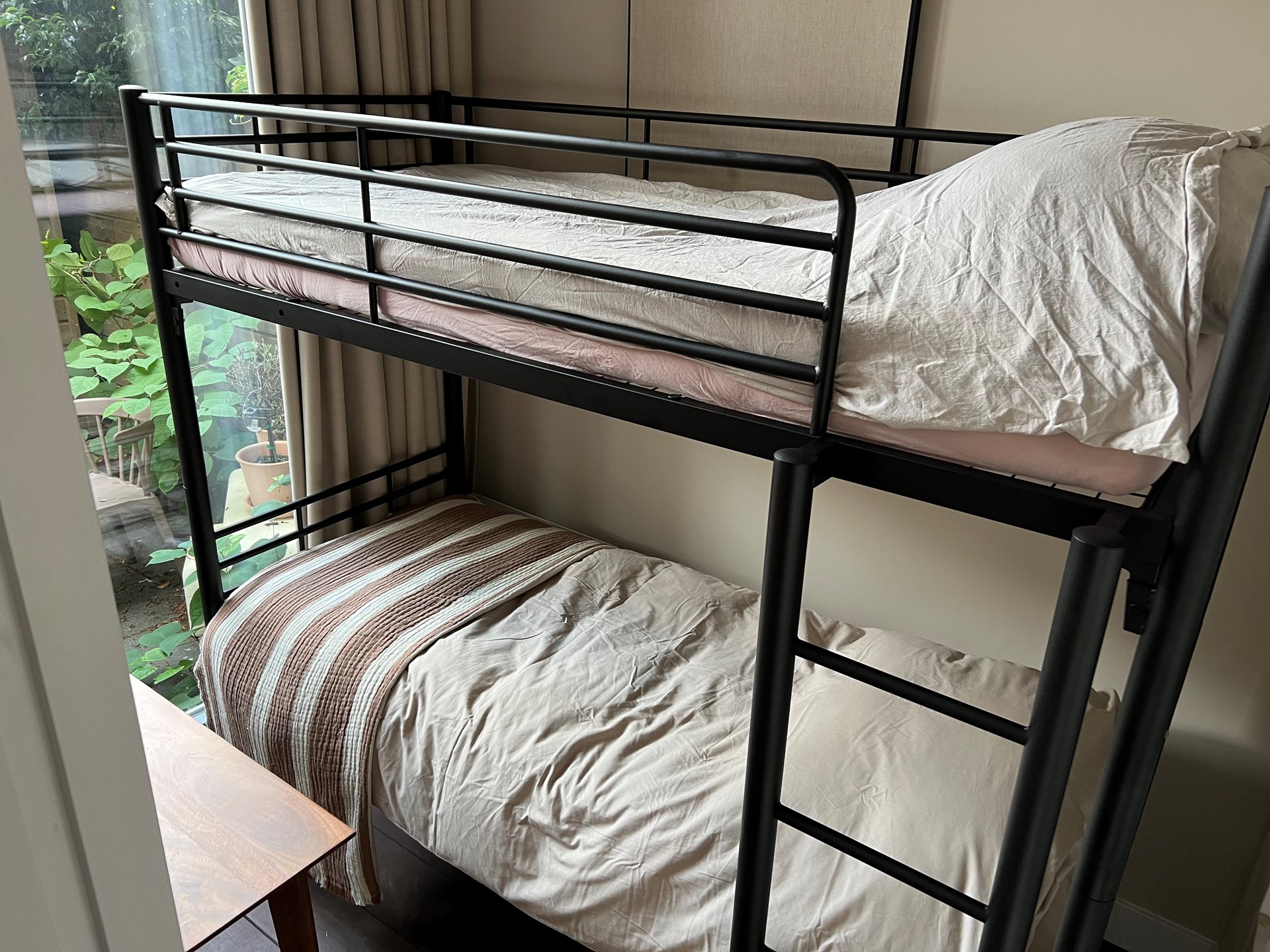De woning beschikt over drie slaapkamers in het hoofdgedeelte: twee met een tweepersoonsbed en een derde met een stapelbed. Iedere slaapkamer beschikt tevens over ruime inbouwkasten waardoor u nooit opbergruimte tekortkomt. Verder zijn er in het hoofdgedeelte twee badkamers (waarvan één met ligbad) inclusief was-droogcombinatie. Achter in de zonnige, op het zuiden gelegen tuin staat bovendien een charmant tuinhuis met een tweepersoonsbed, bureau, kledingkast en een eigen badkamer. Een ideale plek voor gasten, een au pair of oudere kinderen die wat meer privacy wensen.