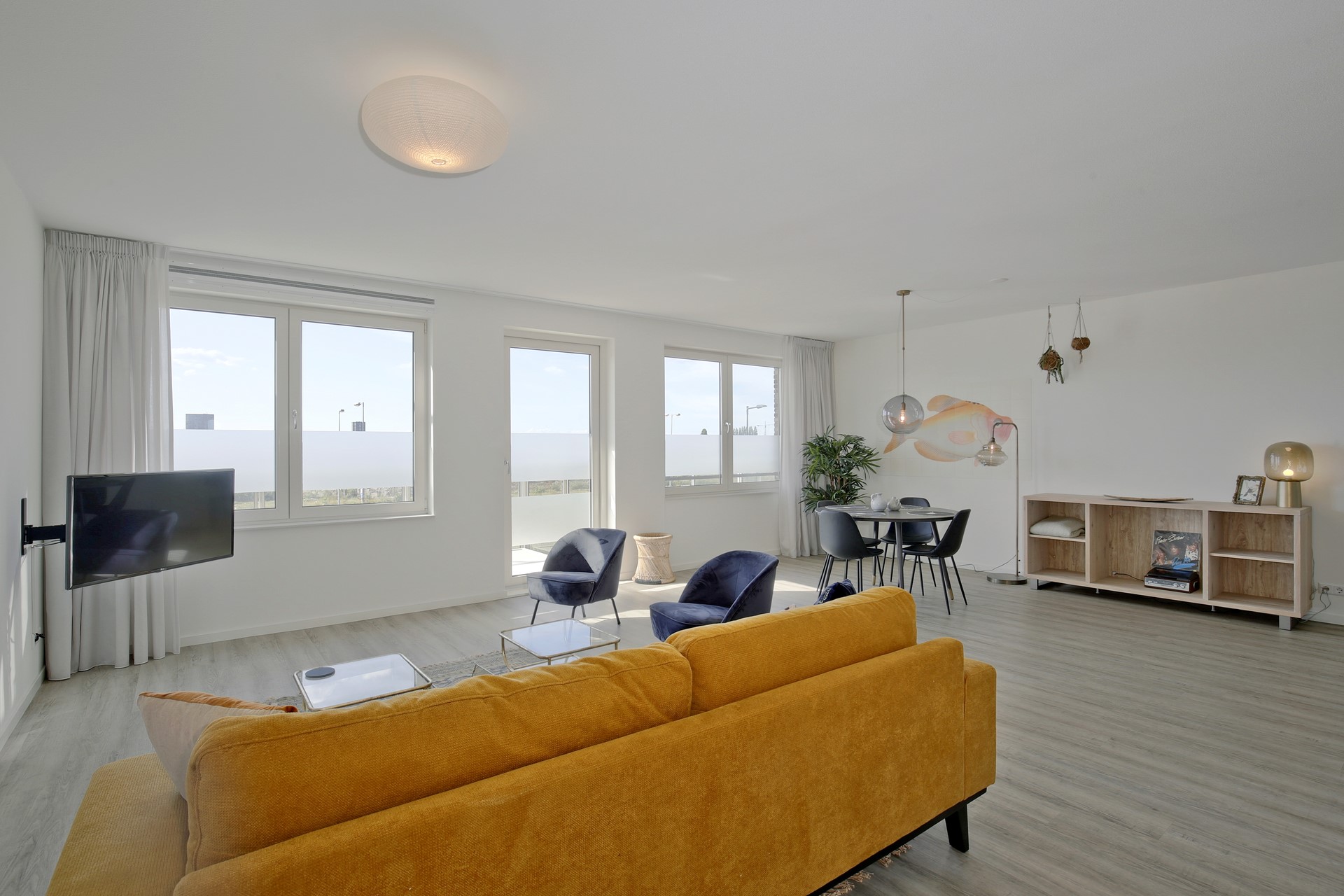 Hoogwaardig, volledig gemeubileerd appartement met twee slaapkamers van circa 100m2 met een balkon op het zuiden met uitzicht op het water. Het appartement is trendy met het nieuwste ontwerp en beschikt over luxe meubels en een complete inventaris van huishoudelijke apparatuur. Je voelt je meteen thuis.