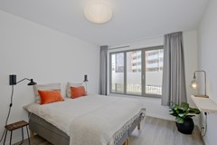 De hoofdslaapkamer is voorzien van een kingsize bed en royale kastruimte. De tweede slaapkamer heeft een tweepersoonsbed en een bureau. Het appartement wordt aangevuld met een luxe badkamer voorzien van een ligbad, inloopdouche en dubbele wastafels.